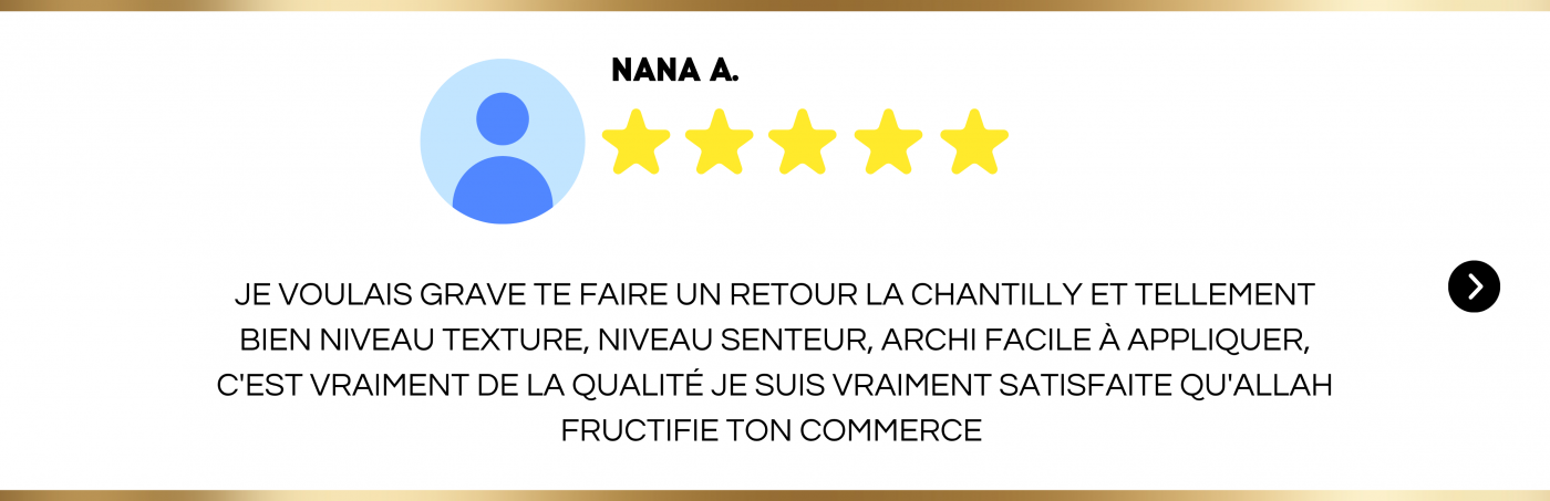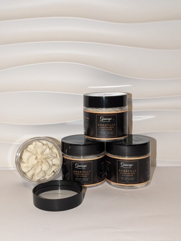 Une chantilly riche et onctueuse, formulée à base de beurre de karité, d’huiles concentrée aux chébé traditionnelle.