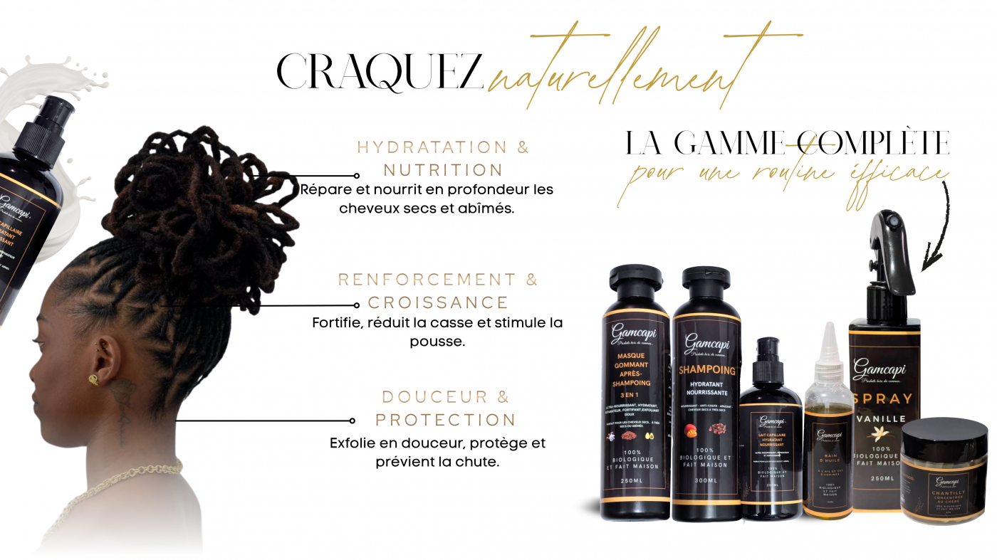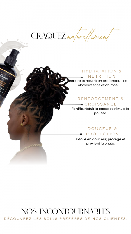Un soin ultra nourrissant, hydratant et réparateur à la fois exfoliant, démélant et gainant Enrichi en beurre de karité, huille concentré de chébé et beurre d’avocat, il purifie le cuir chevelu fortifie la fibre capillaire et redonne souplesse douceur et brillance à la chevelure.